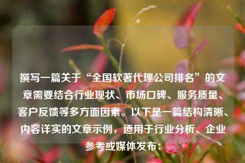 撰写一篇关于“全国软著代理公司排名”的文章需要结合行业现状、市场口碑、服务质量、客户反馈等多方面因素。以下是一篇结构清晰、内容详实的文章示例,适用于行业分析、企业参考或媒体发布: