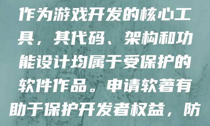 游戏引擎可以申请软件著作权(软著)。根据中国计算机软件保护条例,任何独立开发的软件作品,包括游戏引擎,只要具备原创性,均可申请软著。游戏引擎作为游戏开发的核心工具,其代码、架构和功能设计均属于受保护的软件作品。申请软著有助于保护开发者权益,防止他人非法复制或使用。申请时需提交源代码、文档及版权登记申请表。对于独立开发或团队开发的游戏引擎,建议及时进行软著登记,以维护知识产权。