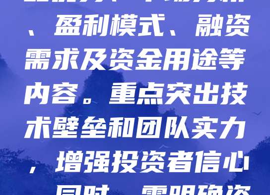 科技型中小企业融资商业计划书是企业获取资金支持的重要文件,旨在向投资者或金融机构展示企业的创新性、市场潜力及财务可行性。计划书应包括公司简介、产品优势、市场分析、盈利模式、融资需求及资金用途等内容。重点突出技术壁垒和团队实力,增强投资者信心。同时,需明确资金使用计划,确保资金用于研发、市场拓展等关键环节,提升企业成长性。一份清晰、专业的商业计划书有助于提高融资成功率,推动企业快速发展。