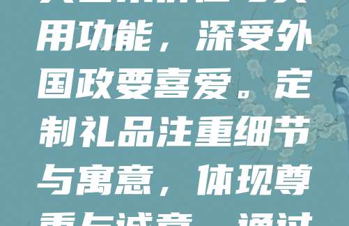 老字号企业凭借精湛工艺与深厚文化底蕴,成为外交礼品定制的优选。其产品不仅承载传统文化,更彰显国家形象。如景泰蓝、丝绸、陶瓷等,兼具艺术价值与实用功能,深受外国政要喜爱。定制礼品注重细节与寓意,体现尊重与诚意。通过老字号品牌,传递中国智慧与审美,增强国际交流的温度与深度。在新时代外交中,传统工艺正焕发新生,成为连接世界的桥梁。