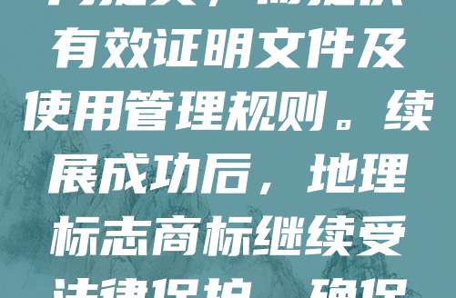 地理标志商标的续展是指在有效期届满前,依法申请延长其保护期限。根据商标法,地理标志商标有效期为十年,期满可申请续展,每次续展有效期十年。续展申请应由申请人向国家知识产权局提交,需提供有效证明文件及使用管理规则。续展成功后,地理标志商标继续受法律保护,确保产地特定品质和声誉不被滥用。及时续展有助于维护品牌价值和消费者信任,促进地方特色经济发展。因此,权利人应密切关注商标有效期,提前办理续展手续,避免因过期而丧失权益。