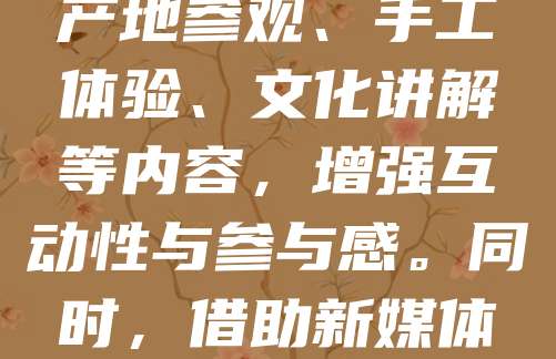 地理标志产品是地方文化与自然禀赋的结晶,具有独特的历史价值和品牌效应。开发地理标志文旅线路,可将特色农产品、传统工艺与旅游深度融合,提升游客体验。通过设计主题路线,如“茶香之旅”“美食探秘”等,结合产地参观、手工体验、文化讲解等内容,增强互动性与参与感。同时,借助新媒体宣传,扩大影响力,带动当地经济发展。文旅线路开发应注重生态保护与可持续发展,确保文化传承与经济效益双赢。地理标志文旅线路不仅是文化传播的载体,更是乡村振兴的重要抓手,为区域经济注入新活力。