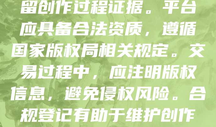 NFT版权登记是保障数字资产权益的重要环节。创作者应在发行前,通过权威平台进行作品登记,明确版权归属。需确保作品原创性,并保留创作过程证据。平台应具备合法资质,遵循国家版权局相关规定。交易过程中,应注明版权信息,避免侵权风险。合规登记有助于维护创作者权益,促进NFT市场健康发展。建议创作者了解相关法律法规,必要时咨询专业机构,确保NFT发行与交易合法有序。