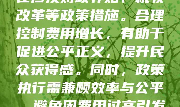费用与政策紧密相关,直接影响社会经济运行和民生福祉。政府通过制定合理的费用政策,既能保障公共服务的可持续性,又能减轻群众负担。例如,教育、医疗等领域的费用调整,往往涉及财政补贴、税收改革等政策措施。合理控制费用增长,有助于促进公平正义,提升民众获得感。同时,政策执行需兼顾效率与公平,避免因费用过高引发社会矛盾。在当前经济转型背景下,优化费用结构、完善政策体系,是推动高质量发展的重要举措。只有科学调控费用与政策之间的关系,才能实现经济社会的协调发展。