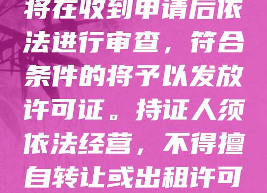 申请烟草专卖许可证需向当地烟草专卖行政主管部门提交书面申请,并提供相关材料,如营业执照、身份证明、经营场所证明等。申请人应具备合法经营资格,无违法记录。审批机关将在收到申请后依法进行审查,符合条件的将予以发放许可证。持证人须依法经营,不得擅自转让或出租许可证。违反规定将依法承担法律责任。申请流程应遵循公开、公平、公正原则,确保市场秩序和公共利益。申请人应如实填报信息,确保资料真实有效,以提高审批通过率。