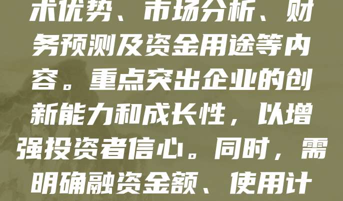 科技型中小企业融资商业计划书是企业向投资者展示其商业模式、市场潜力及融资需求的重要文件。该计划书应包括公司简介、产品与技术优势、市场分析、财务预测及资金用途等内容。重点突出企业的创新能力和成长性,以增强投资者信心。同时,需明确融资金额、使用计划及回报预期,体现项目的可行性和投资价值。一份清晰、专业的商业计划书有助于提升融资成功率,推动企业快速发展。