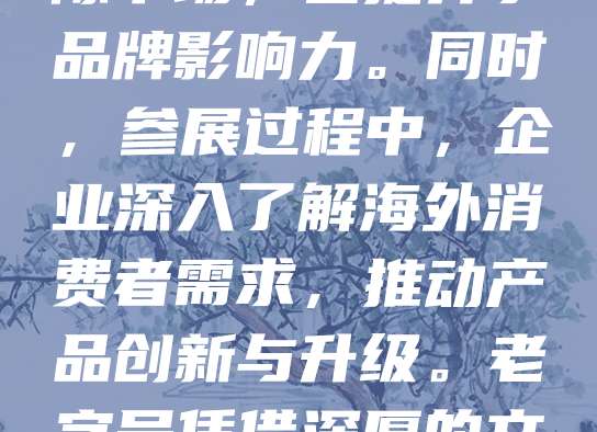 老字号企业积极参加国际展会,展现传统魅力。在近年来的国际展会上,如进博会、广交会等,众多老字号品牌携特色产品亮相,吸引海外客商关注。通过展会,老字号不仅拓展了国际市场,也提升了品牌影响力。同时,参展过程中,企业深入了解海外消费者需求,推动产品创新与升级。老字号凭借深厚的文化底蕴和精湛工艺,在国际舞台上焕发新生,成为中华文化走出去的重要载体。未来,随着“一带一路”倡议的推进,老字号企业将更多参与国际交流,助力中国品牌走向世界。