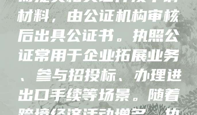 执照公证是指对各类营业执照、经营许可证等法律文件的真实性、合法性进行官方认证的过程。通过公证,可增强执照的法律效力,便于在国内外使用。办理时需提交相关证件及申请材料,由公证机构审核后出具公证书。执照公证常用于企业拓展业务、参与招投标、办理进出口手续等场景。随着跨境经济活动增多,执照公证需求日益增长。为确保公证效果,应选择正规公证机构,并注意公证书的使用范围与有效期。合理利用公证制度,有助于提升企业信用,保障合法权益。