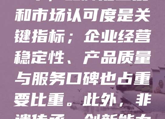 老字号认定评分标准主要从历史传承、品牌价值、经营状况、文化影响力等方面进行评估。历史年限是基础,通常要求不少于30年;品牌知名度和市场认可度是关键指标;企业经营稳定性、产品质量与服务口碑也占重要比重。此外,非遗传承、创新能力和社会责任感也是加分项。评分体系旨在全面衡量企业的历史积淀与现代发展能力,确保老字号在新时代焕发新活力。