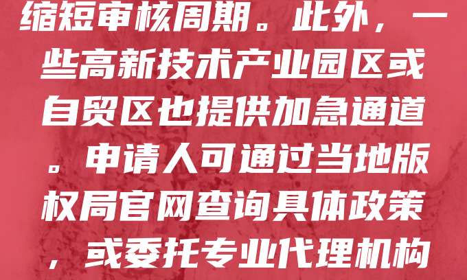 目前,全国大部分城市均可申请软件著作权,但部分城市如北京、上海、广州、深圳等支持加急服务。这些城市的版权保护中心通常具备更强的处理能力与资源,可缩短审核周期。此外,一些高新技术产业园区或自贸区也提供加急通道。申请人可通过当地版权局官网查询具体政策,或委托专业代理机构办理。建议提前准备齐全材料,选择有加急服务的城市以加快审批进度。需要注意的是,加急服务可能需额外支付费用,且并非所有地区均支持。