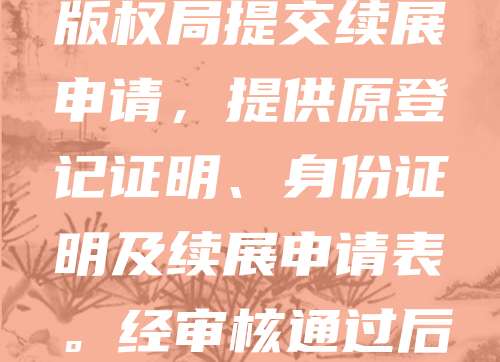 版权登记后,若需继续享有保护,应在有效期届满前办理续展。根据著作权法,作品的保护期为作者终生及其死亡后50年(法人作品为首次发表后50年)。到期前6个月可向版权局提交续展申请,提供原登记证明、身份证明及续展申请表。经审核通过后,版权将自动延续。未及时续展可能导致权利失效,影响作品的合法使用与收益。因此,权利人应密切关注保护期限,按时办理续展手续,以确保持续的法律保护。