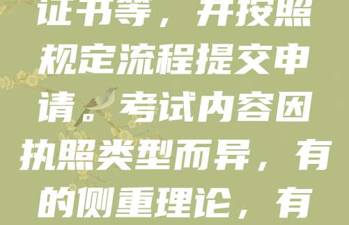 领取执照是许多行业从业者的必经之路。无论是驾驶执照、职业资格证还是营业执照,都是合法开展工作的前提。领取过程通常包括报名、考试、审核和发证等步骤。申请人需准备相关材料,如身份证明、学历证书等,并按照规定流程提交申请。考试内容因执照类型而异,有的侧重理论,有的注重实际操作。通过后,相关部门将颁发执照,标志着持证人具备了相应资格。领取执照不仅是对个人能力的认可,也是遵守法律法规的体现。因此,认真准备、严格遵守流程,是顺利领取执照的关键。