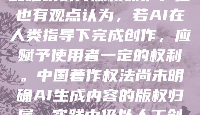 AI生成的作品是否能登记版权,是当前法律界关注的热点。目前,多数国家的版权法强调作品需由人类创作,AI作为工具生成的内容通常不被认定为“原创”,因此难以获得版权保护。但也有观点认为,若AI在人类指导下完成创作,应赋予使用者一定的权利。中国著作权法尚未明确AI生成内容的版权归属,实践中仍以人工创作为主。随着技术发展,未来可能需要立法调整,以平衡技术创新与知识产权保护。总之,AI生成作品的版权问题需结合法律、伦理与技术综合考量。