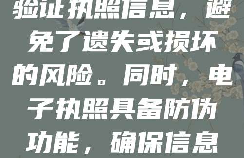 电子执照是数字化时代的重要成果,通过互联网技术实现证件的在线办理与管理。它不仅提高了办事效率,还减少了纸质证件的使用,更加环保便捷。用户可通过手机或电脑随时查看、下载和验证执照信息,避免了遗失或损坏的风险。同时,电子执照具备防伪功能,确保信息真实有效。政府和企业广泛推广电子执照,有助于推动政务服务智能化,提升公众体验。未来,随着技术不断发展,电子执照将在更多领域得到应用,成为日常生活和工作中不可或缺的工具。
