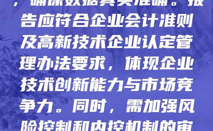 科技型中小企业审计报告需突出其创新能力和技术资产。应重点关注研发投入、知识产权、高新技术收入等核心指标,确保数据真实准确。报告应符合企业会计准则及高新技术企业认定管理办法要求,体现企业技术创新能力与市场竞争力。同时,需加强风险控制和内控机制的审计,防范财务与合规风险。审计人员应具备科技行业背景,提升专业判断能力,为企业提供有价值的决策依据。