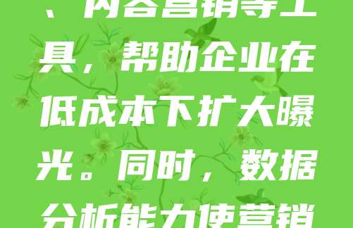 在数字经济时代,科技型中小企业亟需通过数字营销提升品牌影响力与市场竞争力。借助大数据、人工智能等技术,企业可精准定位目标用户,实现个性化营销。社交媒体、搜索引擎优化(SEO)、内容营销等工具,帮助企业在低成本下扩大曝光。同时,数据分析能力使营销效果可量化,便于及时调整策略。数字化转型不仅是趋势,更是生存之道。科技型中小企业应加快构建线上营销体系,提升品牌认知度与客户黏性,以应对激烈市场竞争,实现可持续发展。