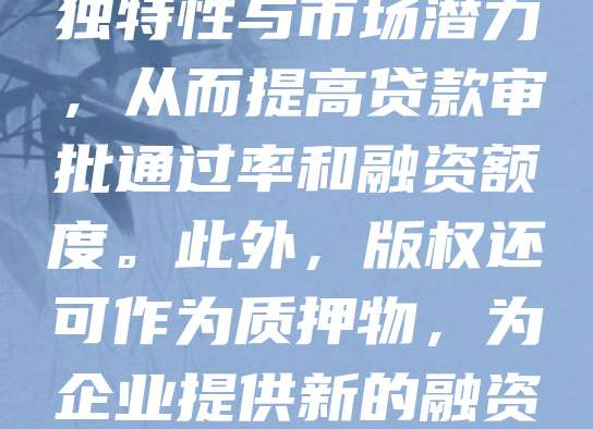 版权登记有助于企业提升无形资产价值,增强融资能力。银行和投资机构在评估企业信用时,会关注其知识产权状况。拥有合法版权的企业,能证明其技术或作品的独特性与市场潜力,从而提高贷款审批通过率和融资额度。此外,版权还可作为质押物,为企业提供新的融资渠道。通过版权登记,企业不仅保护了自身权益,也增强了市场竞争力,为吸引投资和拓展业务奠定基础。因此,版权登记是企业融资过程中不可忽视的重要环节。