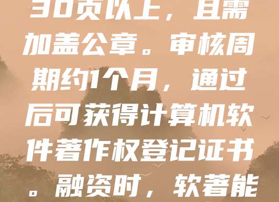申请软著是企业融资的重要环节,有助于提升技术价值与知识产权保护。首先,需明确软件名称、版本号及开发完成日期。其次,准备源代码、用户手册等材料,并通过中国版权保护中心官网提交申请。注意代码需连续30页以上,且需加盖公章。审核周期约1个月,通过后可获得计算机软件著作权登记证书。融资时,软著能增强投资人对技术实力的信任,提高估值。建议企业在产品发布前尽早申请,确保权益完整。同时,定期更新版本,维护知识产权的有效性。软著不仅是法律保障,更是融资过程中不可或缺的“技术名片”。
