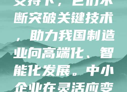 高端装备科技型企业是推动产业升级的重要力量,具有技术密集、创新能力强、附加值高等特点。这类企业聚焦智能制造、精密仪器、新能源等领域,通过自主研发提升核心竞争力。在国家政策支持下,它们不断突破关键技术,助力我国制造业向高端化、智能化发展。中小企业在灵活应变、快速迭代方面优势明显,是创新生态中的活跃因子。未来,需进一步优化营商环境,加大人才与资金扶持,推动其成长为“专精特新”标杆,为经济高质量发展注入强劲动能。