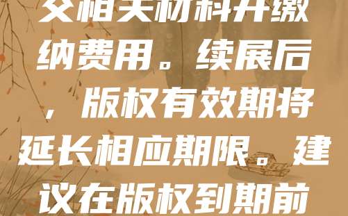 版权登记后,若需继续享有权利,应按时办理续展。根据著作权法,作品的保护期一般为作者终生及死后50年。在保护期内,著作权人可向国家版权局或其委托机构申请续展,提交相关材料并缴纳费用。续展后,版权有效期将延长相应期限。建议在版权到期前6个月开始办理续展手续,避免权利中断。同时,保留好原始创作证据,以备维权时使用。及时续展有助于保障创作者的合法权益,确保作品持续受到法律保护。