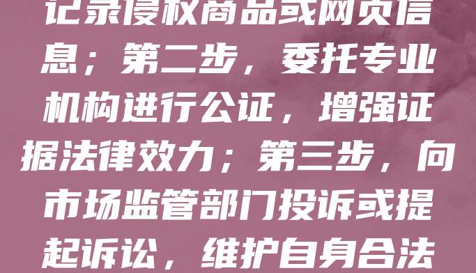遭遇商标侵权?3步取证维权实操指南:第一步,固定证据,通过拍照、录像、截图等方式记录侵权商品或网页信息;第二步,委托专业机构进行公证,增强证据法律效力;第三步,向市场监管部门投诉或提起诉讼,维护自身合法权益。及时取证是维权关键,建议保留原始资料并咨询律师,确保维权过程合法有效。