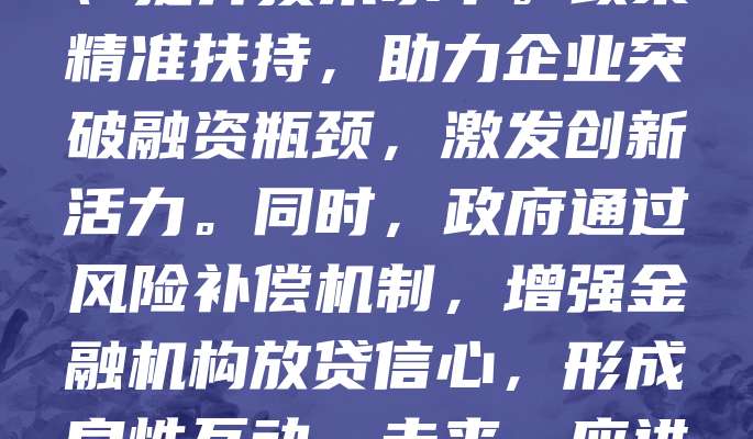 科技型中小企业是推动创新的重要力量,政府贴息贷款为其发展提供了有力支持。通过降低融资成本,贴息贷款有助于企业加大研发投入、提升技术水平。政策精准扶持,助力企业突破融资瓶颈,激发创新活力。同时,政府通过风险补偿机制,增强金融机构放贷信心,形成良性互动。未来,应进一步优化政策体系,扩大覆盖面,提升服务效率,为科技型中小企业营造更优质的营商环境,助力其成长为行业领军者。