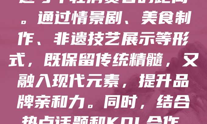 老字号品牌在短视频平台通过创意内容焕发新生。借助抖音、快手等平台,它们以生动有趣的方式讲述品牌故事,拉近与年轻消费者的距离。通过情景剧、美食制作、非遗技艺展示等形式,既保留传统精髓,又融入现代元素,提升品牌亲和力。同时,结合热点话题和KOL合作,扩大传播效果。短视频营销不仅提升了老字号的知名度,也推动了销量增长,助力传统品牌实现数字化转型。