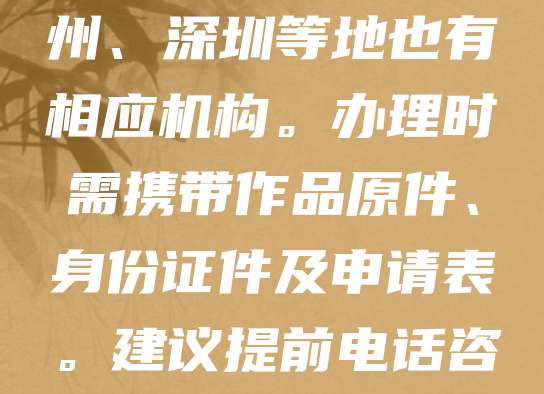 线下版权登记窗口通常设在各地的版权保护中心或文化局。以北京为例,可前往北京市版权保护中心(地址:北京市东城区安外大街138号)。其他城市如上海、广州、深圳等地也有相应机构。办理时需携带作品原件、身份证件及申请表。建议提前电话咨询确认办公时间与所需材料。版权登记有助于保护创作者权益,避免侵权纠纷。如需了解具体地址和流程,可访问当地版权局官网或拨打服务热线查询。
