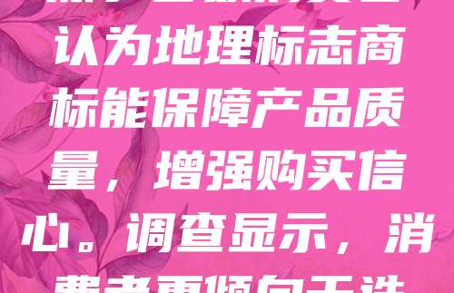 地理标志商标是体现产品原产地和品质的重要标识,对消费者具有重要影响。本文通过问卷调查方式,了解消费者对地理标志商标的认知情况。结果显示,约60%的受访者知晓地理标志商标,但对其具体含义和作用了解不深。多数消费者认为地理标志商标能保障产品质量,增强购买信心。调查显示,消费者更倾向于选择有地理标志认证的产品,尤其在食品、茶叶等领域。然而,部分消费者仍存在认知误区,认为地理标志商标等同于品牌商标。建议加强宣传,提升公众对地理标志商标的认知度与信任度,以促进特色产品市场健康发展。