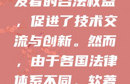 随着“一带一路”倡议的推进,中国与沿线国家在科技、经贸等领域合作日益紧密。在此背景下,软件著作权(软著)的国际保护显得尤为重要。软著作为知识产权的重要组成部分,保障了软件开发者的合法权益,促进了技术交流与创新。然而,由于各国法律体系不同,软著在海外面临登记、维权等挑战。为推动“一带一路”数字经济合作,应加强国际法律协作,推动软著互认机制,提升企业海外知识产权保护能力,助力中国软件产业“走出去”,实现互利共赢。