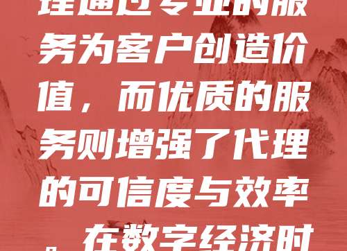 代理与服务是现代商业运作中不可或缺的两个概念。代理是指由第三方代表个人或企业进行交易、谈判或管理事务,常见于销售、法律、金融等领域。服务则是指通过专业技能为他人提供帮助或满足需求。两者相辅相成:代理通过专业的服务为客户创造价值,而优质的服务则增强了代理的可信度与效率。在数字经济时代,代理与服务的形式不断演变,如在线客服、虚拟助理等,提升了用户体验与企业运营效率。合理利用代理与服务,不仅能降低风险,还能提升竞争力。因此,理解并善用代理与服务,是实现高效发展的关键。