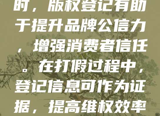 版权登记是打击假冒侵权的有效手段。企业应首先对自身作品进行版权登记,获取法律凭证。一旦发现侵权行为,可依据登记证书向市场监管部门投诉或提起诉讼,维护合法权益。同时,版权登记有助于提升品牌公信力,增强消费者信任。在打假过程中,登记信息可作为证据,提高维权效率。建议企业定期核查市场,及时发现并处理侵权产品,形成有效震慑。通过版权登记与法律手段结合,能更有力地遏制假冒伪劣,保护知识产权,促进市场健康发展。