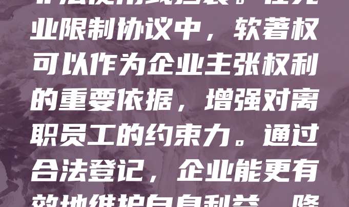 软著申请与竞业保护密切相关。软件著作权登记可为企业的核心技术提供法律保障,明确知识产权归属,防止他人非法使用或抄袭。在竞业限制协议中,软著权可以作为企业主张权利的重要依据,增强对离职员工的约束力。通过合法登记,企业能更有效地维护自身利益,降低技术泄露风险,确保市场竞争优势。因此,软著申请不仅是知识产权保护的手段,更是企业竞业保护的重要工具。