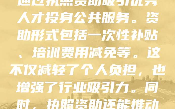 执照资助是指政府或相关机构为鼓励特定行业人才发展,对取得专业执照的人员提供经济支持。此举有助于提升行业专业水平,促进人才稳定就业。例如,医疗、教育、法律等行业常通过执照资助吸引优秀人才投身公共服务。资助形式包括一次性补贴、培训费用减免等。这不仅减轻了个人负担,也增强了行业吸引力。同时,执照资助还能推动行业规范化发展,确保服务质量。然而,需建立科学评估机制,防止资源浪费。未来,应结合地区发展需求,优化资助政策,让更多人受益,实现人才与行业的双赢。