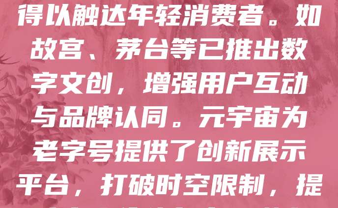 老字号企业正借助元宇宙技术焕发新生。通过虚拟门店、数字藏品和沉浸式体验,传统品牌得以触达年轻消费者。如故宫、茅台等已推出数字文创,增强用户互动与品牌认同。元宇宙为老字号提供了创新展示平台,打破时空限制,提升文化价值与商业潜力。未来,更多老字号将融合虚拟与现实,实现传承与创新的双赢。