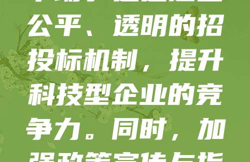 科技型中小企业是推动科技创新的重要力量,应享有平等参与政府采购的权利。政府应优化采购政策,降低准入门槛,鼓励创新产品和服务进入市场。通过建立公平、透明的招投标机制,提升科技型企业的竞争力。同时,加强政策宣传与指导,帮助其更好地理解和参与政府采购流程。此举不仅有助于企业发展,也能提升政府采购的科技含量和效率,促进经济高质量发展。