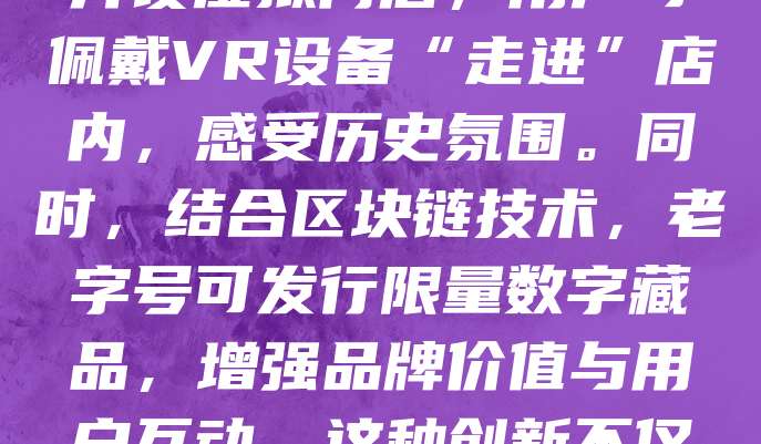 老字号企业正借助元宇宙技术焕发新生。通过虚拟店铺、数字藏品和沉浸式体验,传统品牌得以突破物理限制,吸引年轻消费者。例如,一些百年老店在元宇宙中开设虚拟门店,用户可佩戴VR设备“走进”店内,感受历史氛围。同时,结合区块链技术,老字号可发行限量数字藏品,增强品牌价值与用户互动。这种创新不仅保留了文化精髓,还提升了品牌影响力。未来,随着技术发展,老字号有望在元宇宙中构建更丰富的文化生态,实现传统与科技的深度融合。