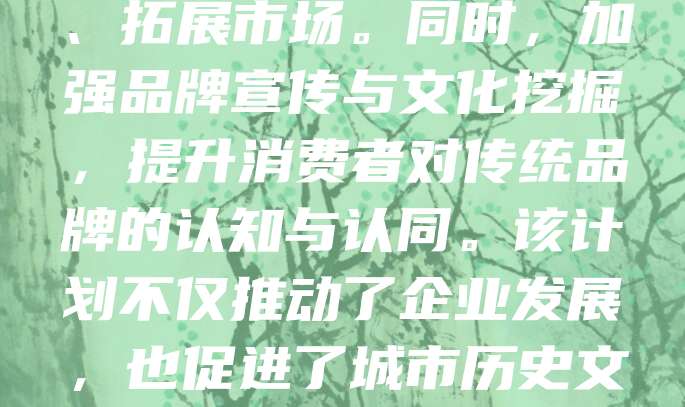 广州老字号振兴计划旨在保护和传承本土商业文化,激发传统品牌新活力。通过政策扶持、资金补贴和数字化转型,助力老字号企业创新产品、拓展市场。同时,加强品牌宣传与文化挖掘,提升消费者对传统品牌的认知与认同。该计划不仅推动了企业发展,也促进了城市历史文化传承,增强了市民的归属感与自豪感。未来,广州将继续支持老字号在新时代焕发新生机,打造具有岭南特色的商业文化名片。