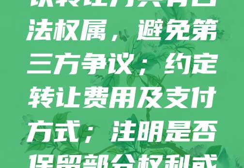 软著转让合同是保护软件著作权的重要法律文件,签订时需注意以下事项:明确转让内容,包括软件名称、版本及权利范围;确认转让方具有合法权属,避免第三方争议;约定转让费用及支付方式;注明是否保留部分权利或使用权;明确交付方式与时间;双方签字盖章并注明签署日期。建议在专业律师指导下签订,确保条款合法有效,保障双方权益。