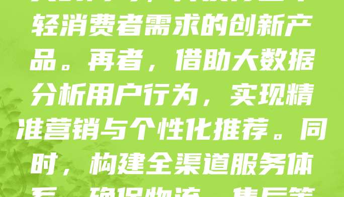 老字号企业进军电商,需融合传统优势与数字化思维。首先,强化品牌故事,通过短视频、直播等形式提升用户情感共鸣。其次,优化线上产品结构,保留经典品类的同时,开发符合年轻消费者需求的创新产品。再者,借助大数据分析用户行为,实现精准营销与个性化推荐。同时,构建全渠道服务体系,确保物流、售后等环节高效顺畅。最后,注重平台合作,利用天猫、京东等主流电商平台扩大曝光。唯有坚守品质、创新运营,老字号方能在电商浪潮中焕发新生机。