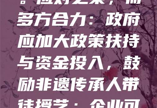 老字号承载着深厚的文化记忆与传统技艺,但随着时代变迁,传承断代问题日益突出。年轻一代对传统行业兴趣不足,技艺传承缺乏系统培养机制,导致许多珍贵技艺濒临失传。应对之策,需多方合力:政府应加大政策扶持与资金投入,鼓励非遗传承人带徒授艺;企业可创新经营模式,结合现代科技提升吸引力;同时加强教育引导,让年轻人了解并热爱传统文化。唯有激活传承活力,才能让老字号在新时代焕发新生机,延续文化根脉。