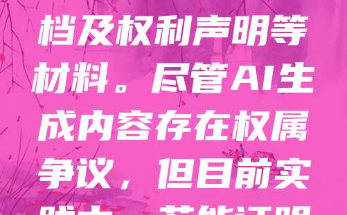 AI大模型可以申请软件著作权。根据中国计算机软件保护条例,只要AI大模型具备原创性、可复制性,并以代码形式表现,即可作为软件作品进行登记。开发者需提交源代码、文档及权利声明等材料。尽管AI生成内容存在权属争议,但目前实践中,若能证明开发者对模型有实质性投入,仍可获得软著保护。这有助于维护知识产权,促进技术成果转化。建议在开发过程中保留完整开发记录,以备后续维权之需。