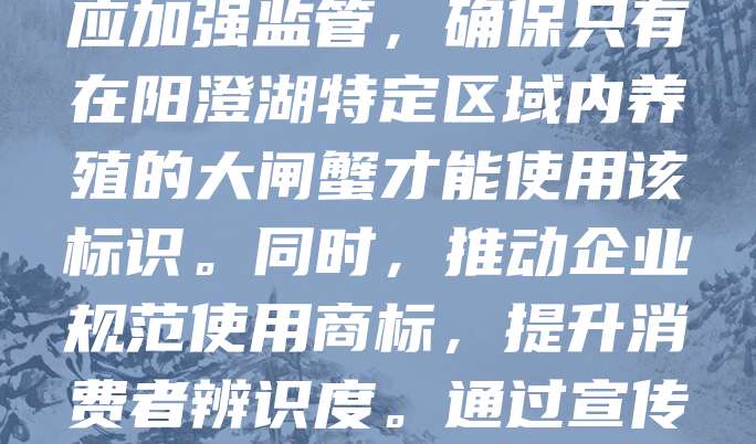 阳澄湖大闸蟹作为中国地理标志产品,其品质与产地密切相关。为保护这一特色品牌,需强化地理标志商标的法律保护,防止假冒伪劣产品扰乱市场。相关部门应加强监管,确保只有在阳澄湖特定区域内养殖的大闸蟹才能使用该标识。同时,推动企业规范使用商标,提升消费者辨识度。通过宣传与教育,增强公众对地理标志的认知,维护品牌形象与消费者权益。唯有严格保护,方能延续阳澄湖大闸蟹的声誉与价值,促进地方经济可持续发展。