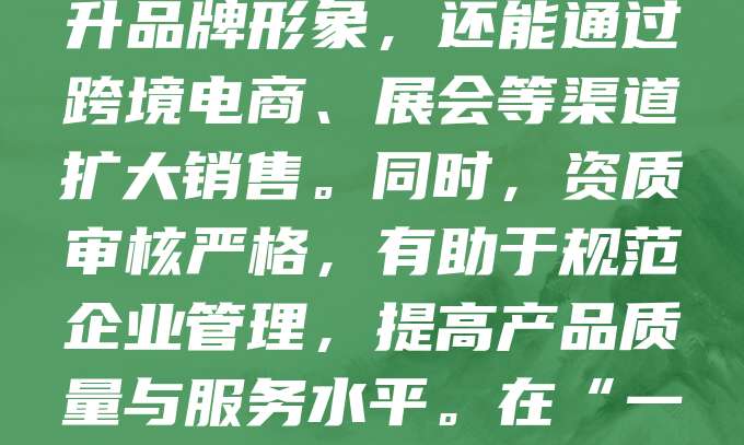 老字号企业拥有独特的品牌价值和历史积淀,具备进出口资质可拓展国际市场。获得进出口资质后,老字号不仅能提升品牌形象,还能通过跨境电商、展会等渠道扩大销售。同时,资质审核严格,有助于规范企业管理,提高产品质量与服务水平。在“一带一路”倡议下,老字号企业更应积极布局海外,借助政策优势,推动传统产品走向世界,实现品牌国际化。