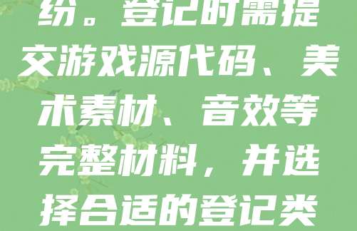 游戏开发者在进行版权登记时,应重点关注作品的独创性、完成时间及权属证明。首先,确保游戏内容具有原创性,避免抄袭他人作品。其次,明确开发团队的权属分配,避免后期纠纷。登记时需提交游戏源代码、美术素材、音效等完整材料,并选择合适的登记类别。建议在游戏上线前完成登记,以保障合法权益。此外,可借助专业机构或平台进行登记,提高效率与合规性。及时登记版权有助于在侵权发生时快速维权,维护开发者利益。