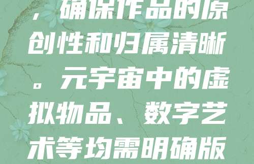 在元宇宙中,数字资产日益重要,版权登记成为保护创作者权益的关键。通过区块链技术,版权登记可实现去中心化、不可篡改,确保作品的原创性和归属清晰。元宇宙中的虚拟物品、数字艺术等均需明确版权信息,以防止侵权与盗用。未来,版权登记将与元宇宙深度融合,构建更安全、透明的数字创作环境,推动数字经济发展。