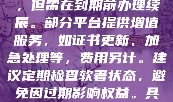 软件著作权续费或年费根据登记机构规定有所不同,通常为100-200元/件。软著有效期为50年,无需每年缴费,但需在到期前办理续展。部分平台提供增值服务,如证书更新、加急处理等,费用另计。建议定期检查软著状态,避免因过期影响权益。具体费用可咨询当地版权保护中心或正规代理机构,确保信息准确。合理规划软著维护,有助于保障知识产权安全。
