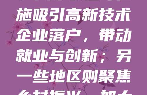 近年来,地方政策在推动区域经济发展中发挥着重要作用。各地政府根据自身资源禀赋和产业特点,制定差异化政策,促进产业升级与民生改善。例如,一些城市通过税收优惠、人才引进等措施吸引高新技术企业落户,带动就业与创新;另一些地区则聚焦乡村振兴,加大基础设施投入,提升农村发展水平。同时,政策执行需注重实效,避免“一刀切”,确保政策落地生根。未来,地方政策应更加注重可持续性与公平性,助力实现高质量发展目标。