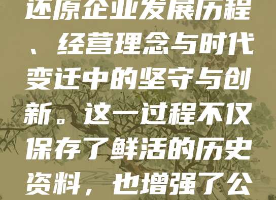 老字号承载着城市记忆与文化传承,其口述历史采集是对传统技艺与商业智慧的珍贵记录。通过访谈老匠人、店主及传承人,可还原企业发展历程、经营理念与时代变迁中的坚守与创新。这一过程不仅保存了鲜活的历史资料,也增强了公众对传统文化的认知与认同。在数字化时代,口述历史应结合多媒体手段,增强传播力与影响力,让老字号精神焕发新生。