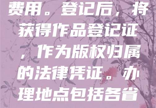 版权登记可前往国家版权局或其委托的机构办理。个人或单位需准备作品原件、身份证明等材料,填写申请表并缴纳费用。登记后,将获得作品登记证,作为版权归属的法律凭证。办理地点包括各省、市版权保护中心及线上平台。建议提前咨询当地版权局了解具体流程和所需材料,确保顺利办理。